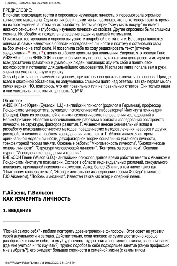 Г.Айзенк, Г.Вильсон. Как измерить личность.