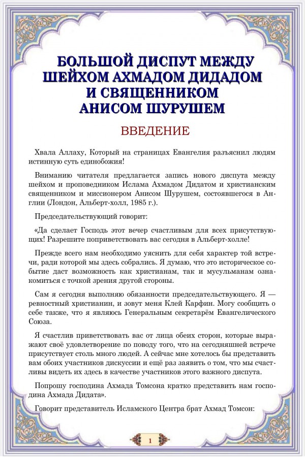 Большой диспут между шейхом Ахмадам Дидадом и священником Анисом Шурушем